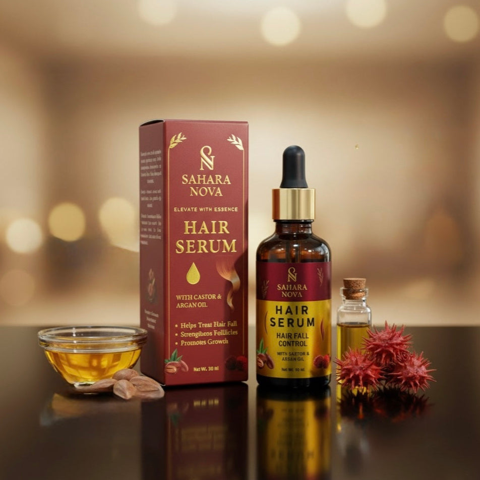 Crafted with nature’s finest, Sahara Nova Hair Serum blends pure Castor Oil & Argan Oil Extract to deeply nourish the scalp, reduce hair fall, and stimulate natural growth. This gentle, herbal formula is lightweight, non-greasy, and ideal for daily use leaving your hair feeling strong, balanced, and naturally radiant